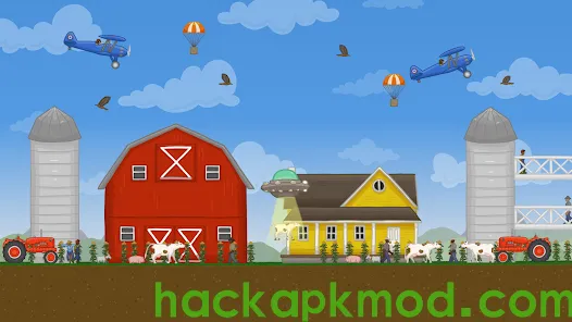 Aliens researching Earth attempt to deploy an inconspicuous UFO to quietly collect samples of life on the planet, but the wrong drone is launched, and this one grows with everything it collects. Abduct cellular structures, weevils, corn kernels, fireflies, scarecrows, chickens, pigs, cows, farmers, windmills, hot air balloons, barns, and entire military bases as your UFO expands far beyond its intended size.