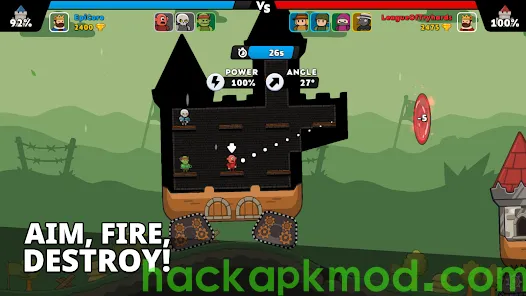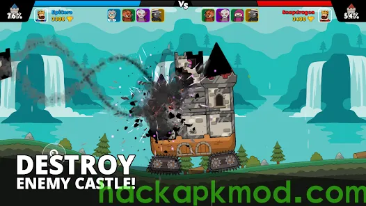 - Fully destructible castles, physics-driven combat
