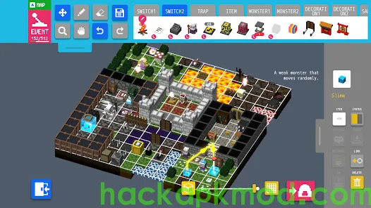 The game includes some premade challenge dungeons, and of course you can play dungeons created by people from all over the world as well as have them play your own! You don't need to know how to write code—even the most complex systems are easy to implement. The only limit is your own creativity!