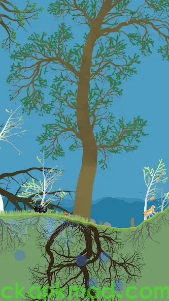 Clicking on animals trigger different behaviors that influence the forest ecosystem: Moose poop, fertilizing the soil. Voles eat tree roots, damaging the tree. Foxes hunt other animals.