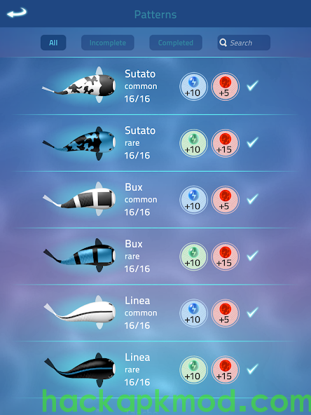 Over 50 Breathtaking Koi Patterns to Collect: Discover a delightful array of over 50 unique koi patterns, each boasting vibrant colors and captivating designs. As you progress, watch your collection grow as you encounter new koi.