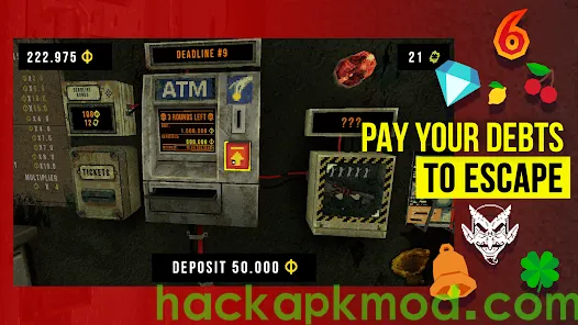CloverPit(Full Paid) is a demonic rogue-lite that traps players in a hell of their own creation. Locked in a rusty cell with a slot machine and an ATM, you must pay off your debt at the end of each round, or fall to ruin – literally!
